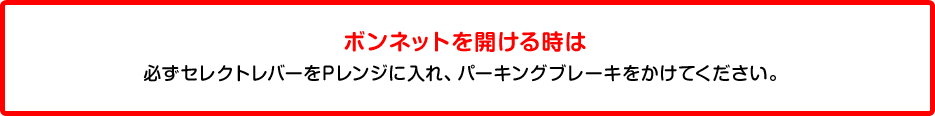 運転者が車内にいてブレーキペダルを踏んでいても、ボンネットを開けることでエンジンが完全に停止した状態になります。