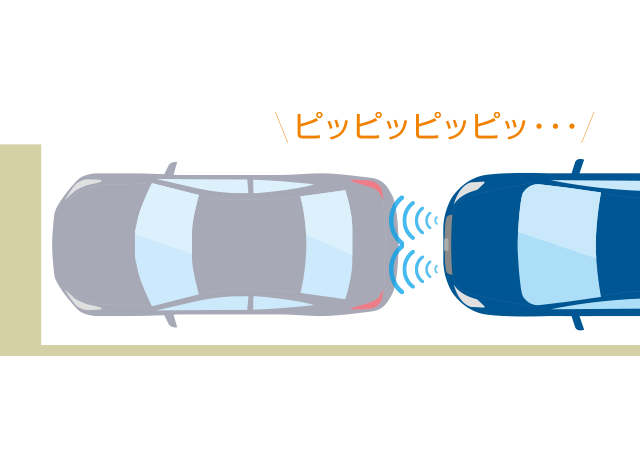 時速約10km以下で前進/後退時に、約3m以内に壁などがあると、ランプとブザーで警告。
