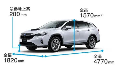 *全高はシャークフィンアンテナ装着車の数値です。シャークフィンアンテナ非装着車の場合-25mmとなります。また、ルーフレール装着車は+5mmとなります。