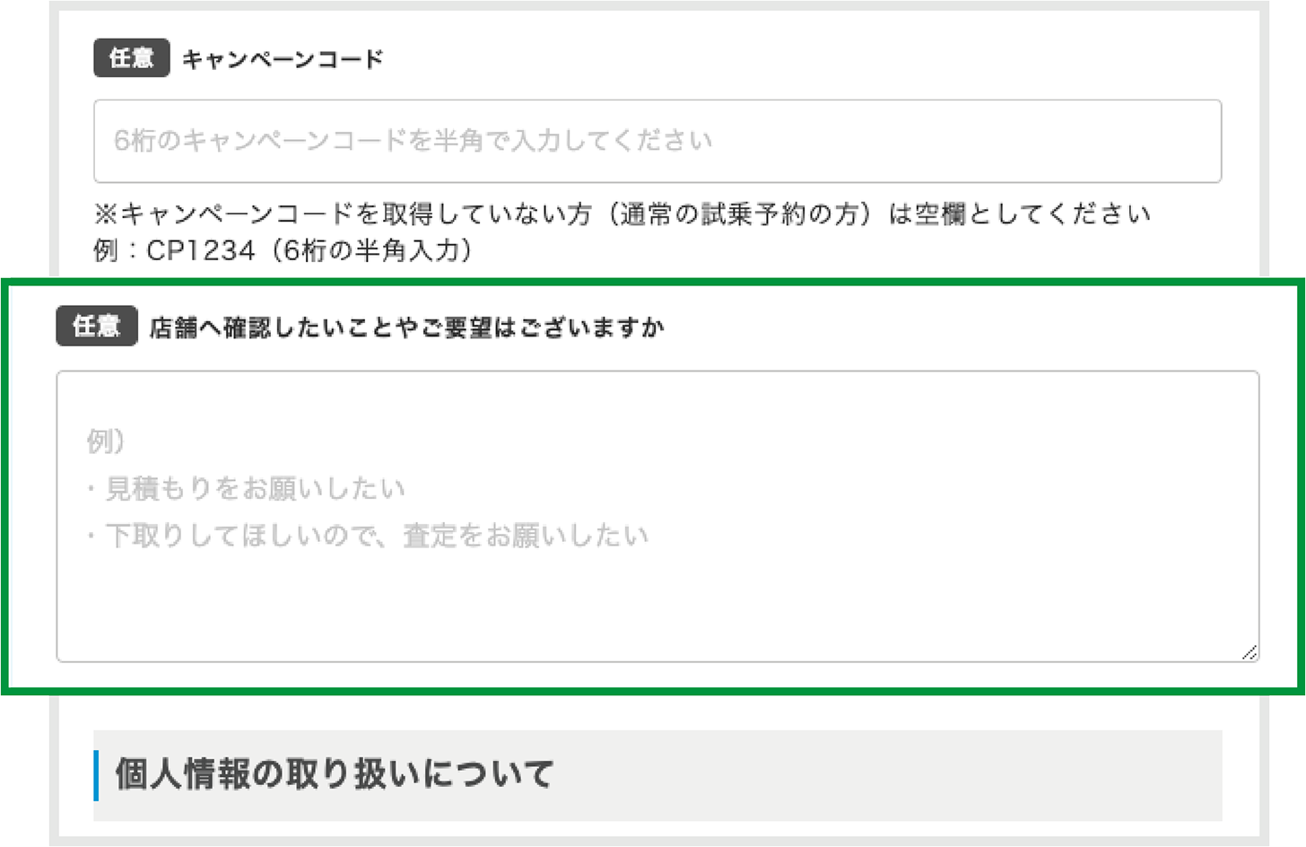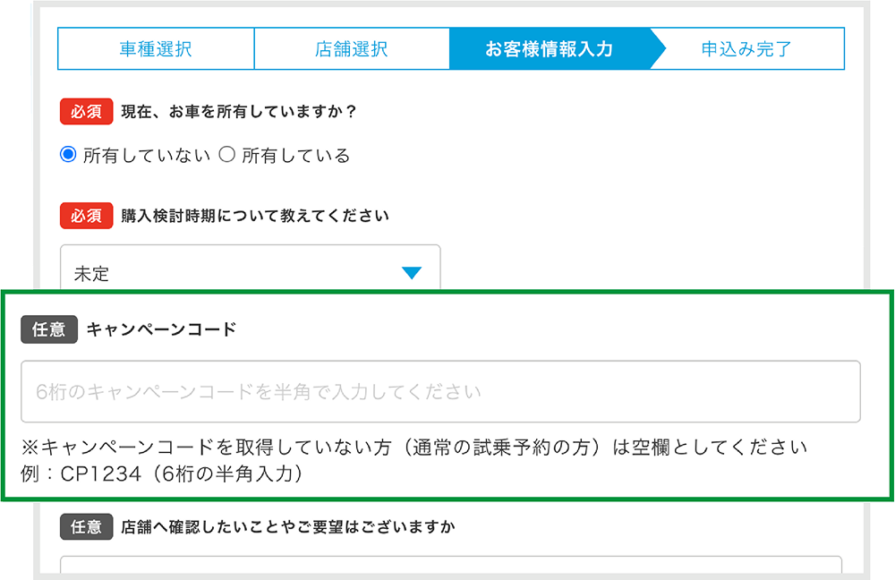 使用ドライバーのメーカー記載「店舗へ確認したいことやご要望はございますか」に