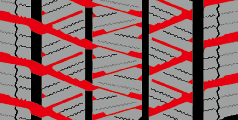 サイプ間隔の適正化により、ブロック剛性を向上。ブロックの倒れ込みを抑え、接地性アップ。