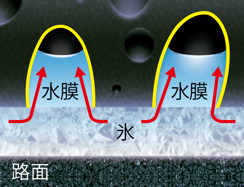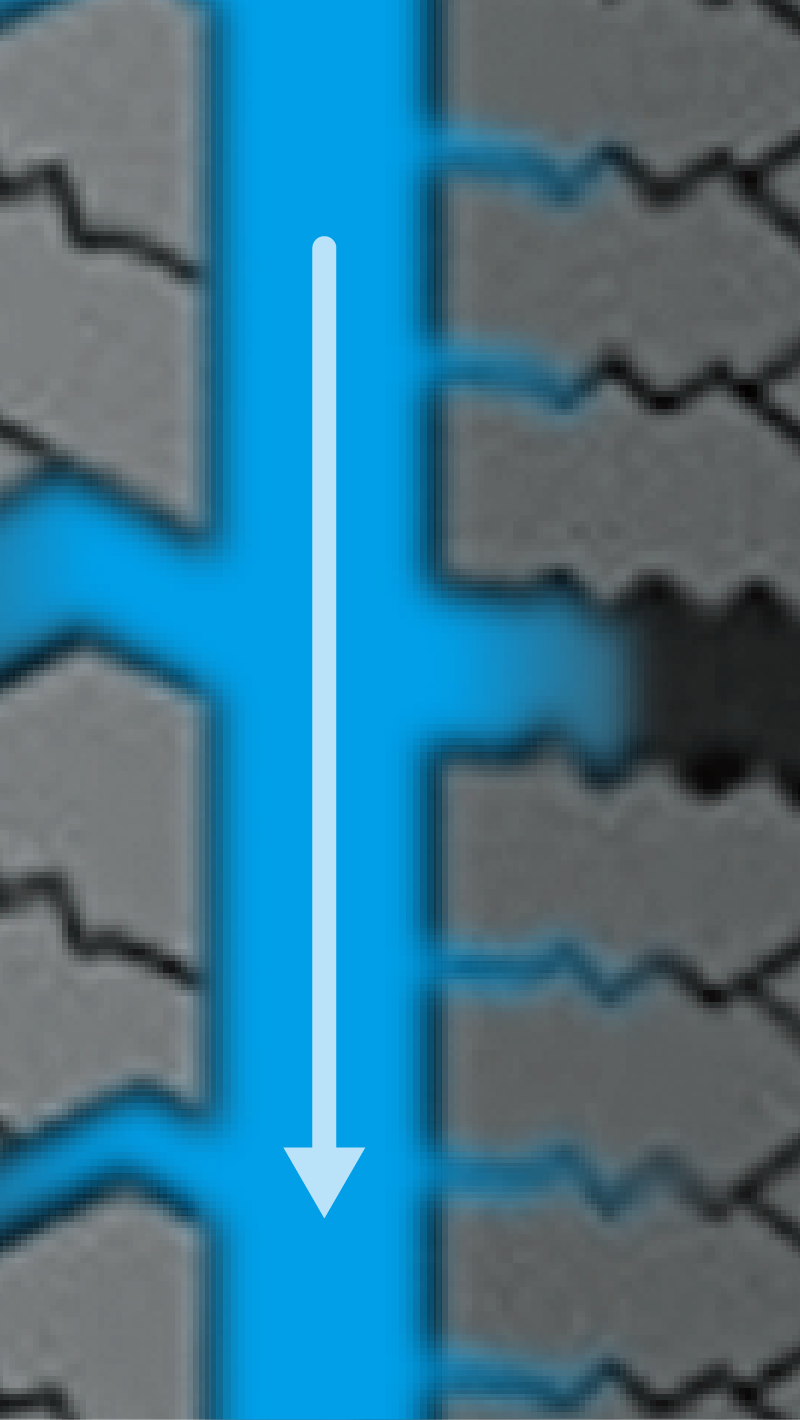 ブロックサイズの均等化により接地圧を分散、均一な接地によりタイヤと路面のすべりを低減。