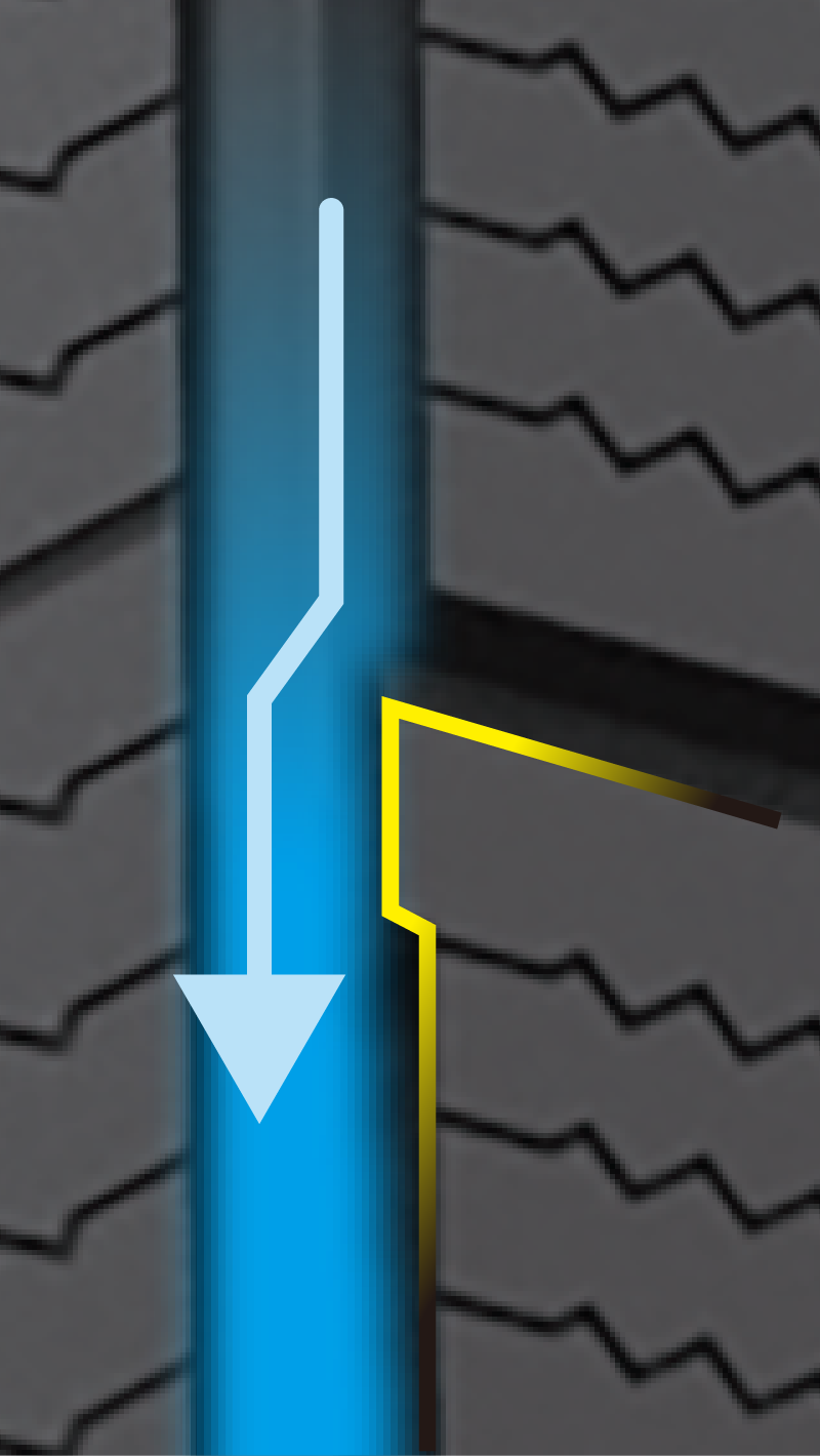 サイプの一部の端を貫通させないことでサイプ内への余計な水の侵入を抑制。
