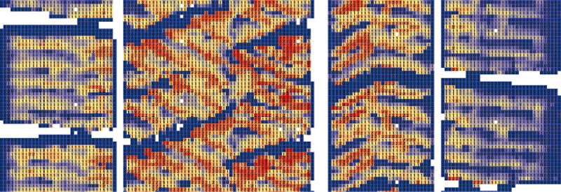 すべり量の大きい赤色の面積が減少しているとともに、全体的に同じすべり量(同じ色)が分布していることが分かる。