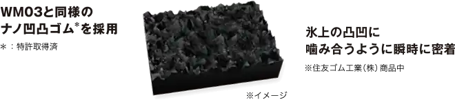 噛み合うように、氷に密着
