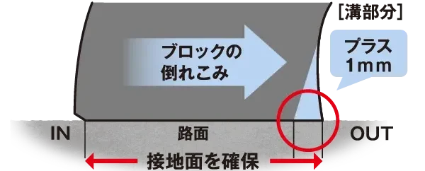 アウト側のブロックを大きくして、コーナリング時にふんばります。