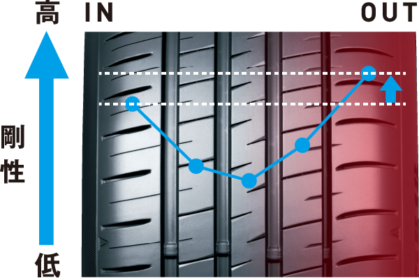 アウト側の剛性を強化することでコーナリング時にさらなるパフォーマンスを発揮します。
