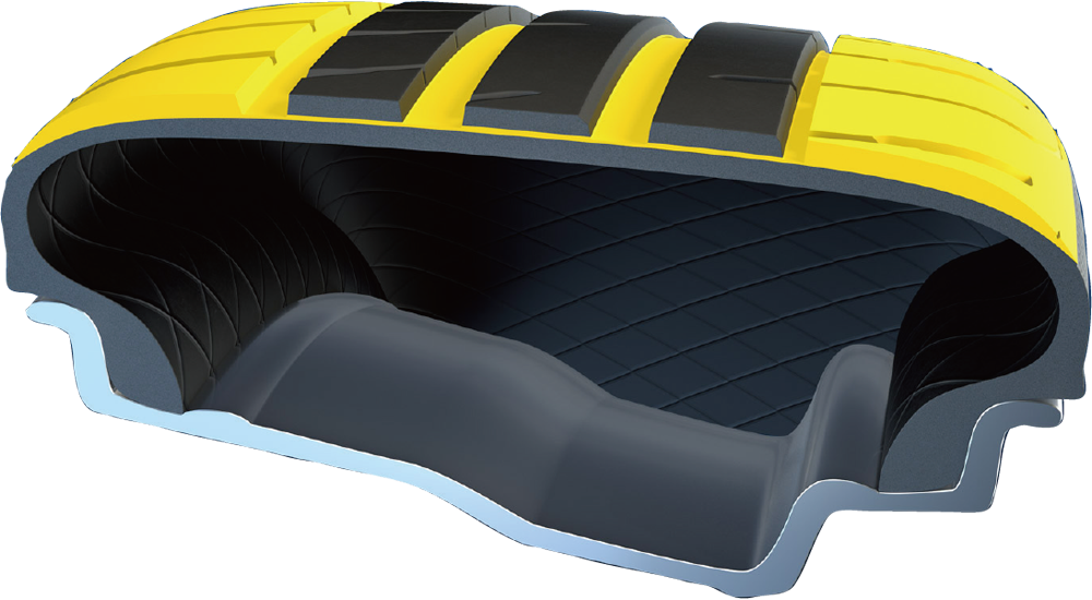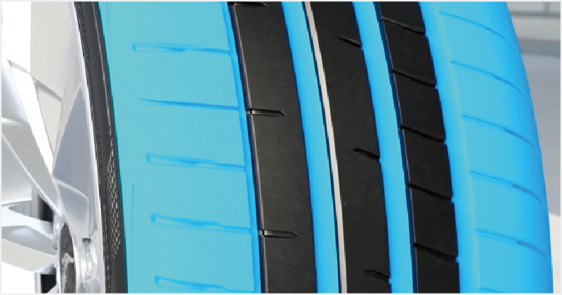 ドライ走行を支えるアウターセクションと、ウェット走行を支えるセンターセグメントを組み合わせたU字型コンパウンド構成を採用。ドライ路面での安定性と優れたウェットパフォーマンスの両立を実現します。