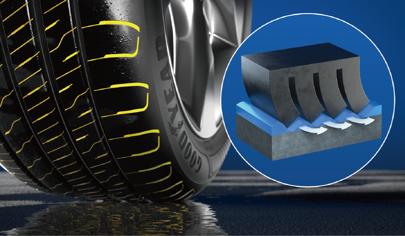 相反するウェット性能と耐摩耗性能を両立させ、さらに優れた運動性能を提供します。