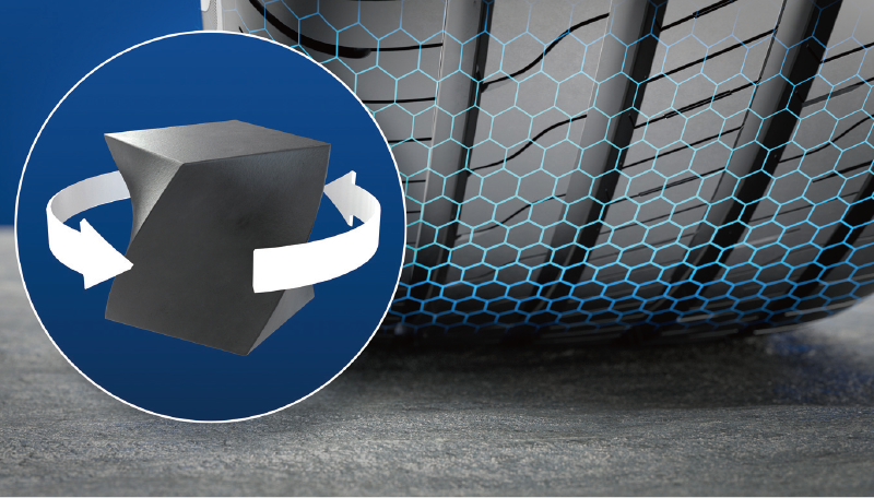 トレッド部に弾力性と柔軟性が高いコンパウンドを使用。様々な温度域でコンパウンドの破損を防止することで、さらなるロングライフを実現します。