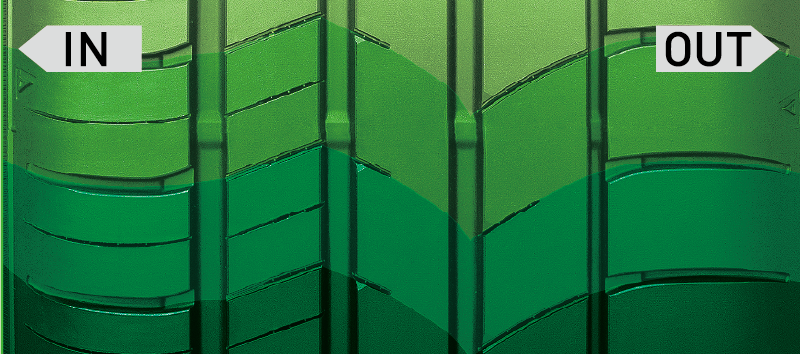 大きさが異なる5つのショルダーブロックの配列を最適化。ピッチ数を増やし、ランダムに配置することで路面からのピッチ音(叩き音)を分散。パターンノイズとピッチノイズの低減に貢献することで、ハイレベルな静粛性を実現します。