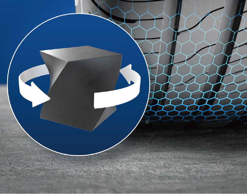 トレッド部に弾力性と柔軟性が高いコンパウンドを使用。様々な温度域でコンパウンドの破損を防止することで、さらなるロングライフを実現します。