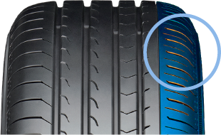 従来品*と比べ溝面積比を減らし、操縦安定の低下を抑制。