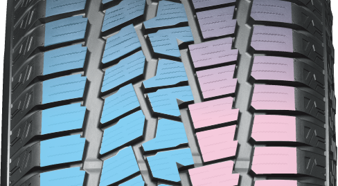 イン側-ウェット、スノートラクションを向上。アウト側-高いドライ性能を発揮。