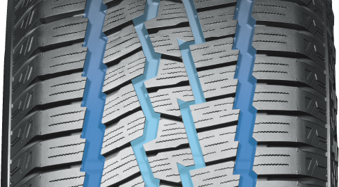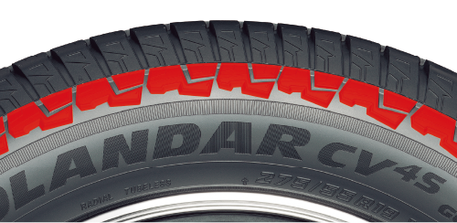 4-ジグザググルーブが、対ハイドロプレーニング性能、ウェット、スノートラクションを向上。