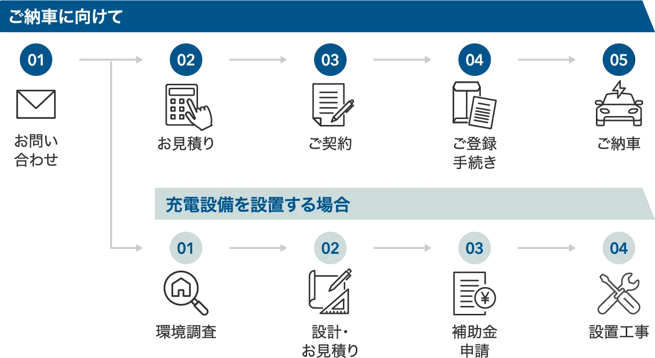 - ※充電設備の設置については、販売店から充電設備設置会社をご紹介し、最適な充電設備をご提供させていただきます。