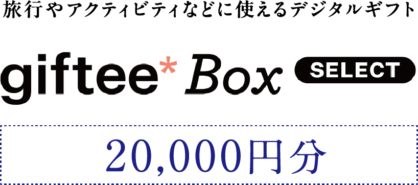 【giftee Box Selectについて】●ラインナップの中から好きな商品と交換できるデジタルギフト(giftee Box Select)を、普通・小型自動車(新車):20,000ポイント、軽乗用車(新車)または中古車:10,000ポイントを付与します。ラインナップおよび交換に必要なポイントは付与されたgiftee Box Selectにより異なり、変更になる場合がございます。またgiftee Box