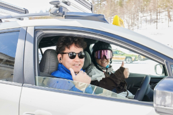 雪山をSUBARUに乗って駆け上がる