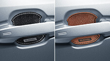 ドアの開閉時に爪などをひっかけることで付く、ボディの傷や汚れを防止するカーボン調のプロテクター。ドアハンドル回りをスポーティに演出します。