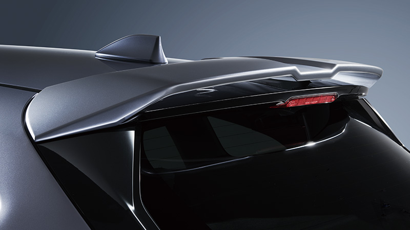 車体後方の空気の流れを整えるボルテックスジェネレーター形状を採用。ブラック塗装がリヤスタイルを引き締めます。