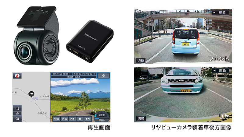 運転時に映像を記録する車載カメラ。万が一事故が発生した時でも、映像として記録が残ります。スマートフォンでの映像再生も可能です。