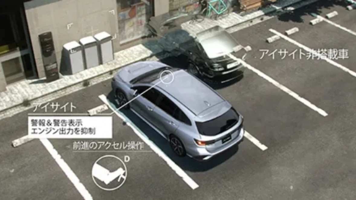 駐車スペースから出る時などの、シフトレバーやペダルの誤操作による急な飛び出しを抑制し、壁にぶつかってしまう事故などを防ぎます。