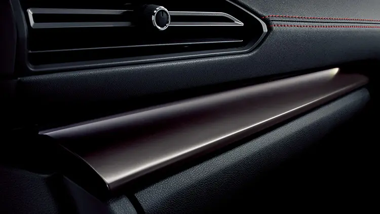 インパネ加飾パネルに沿って点灯し、プルハンドル照明やカップホルダー照明とあわせて上質な空間を演出します。